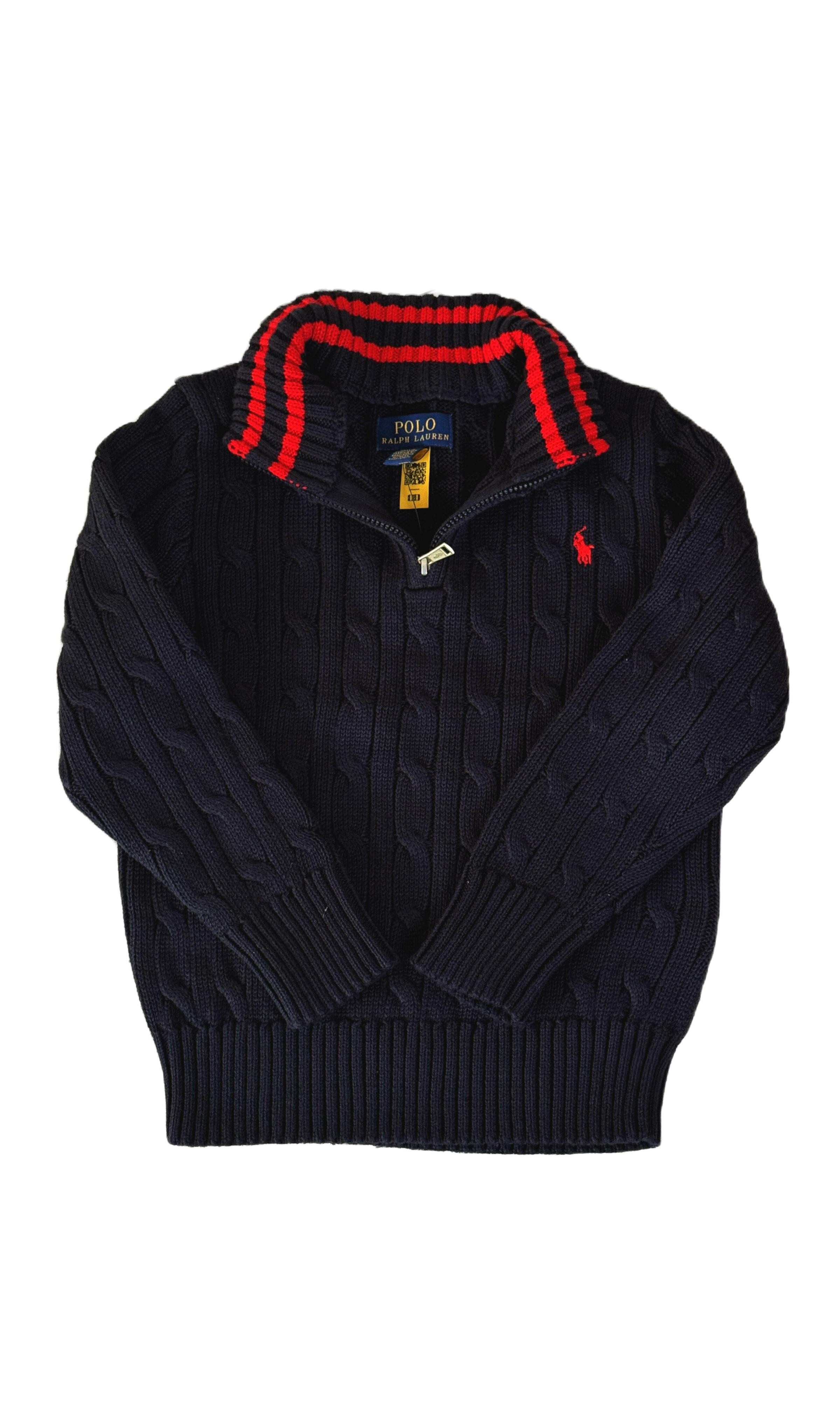 Navy blue cable-knit sweater from Polo Ralph Lauren.