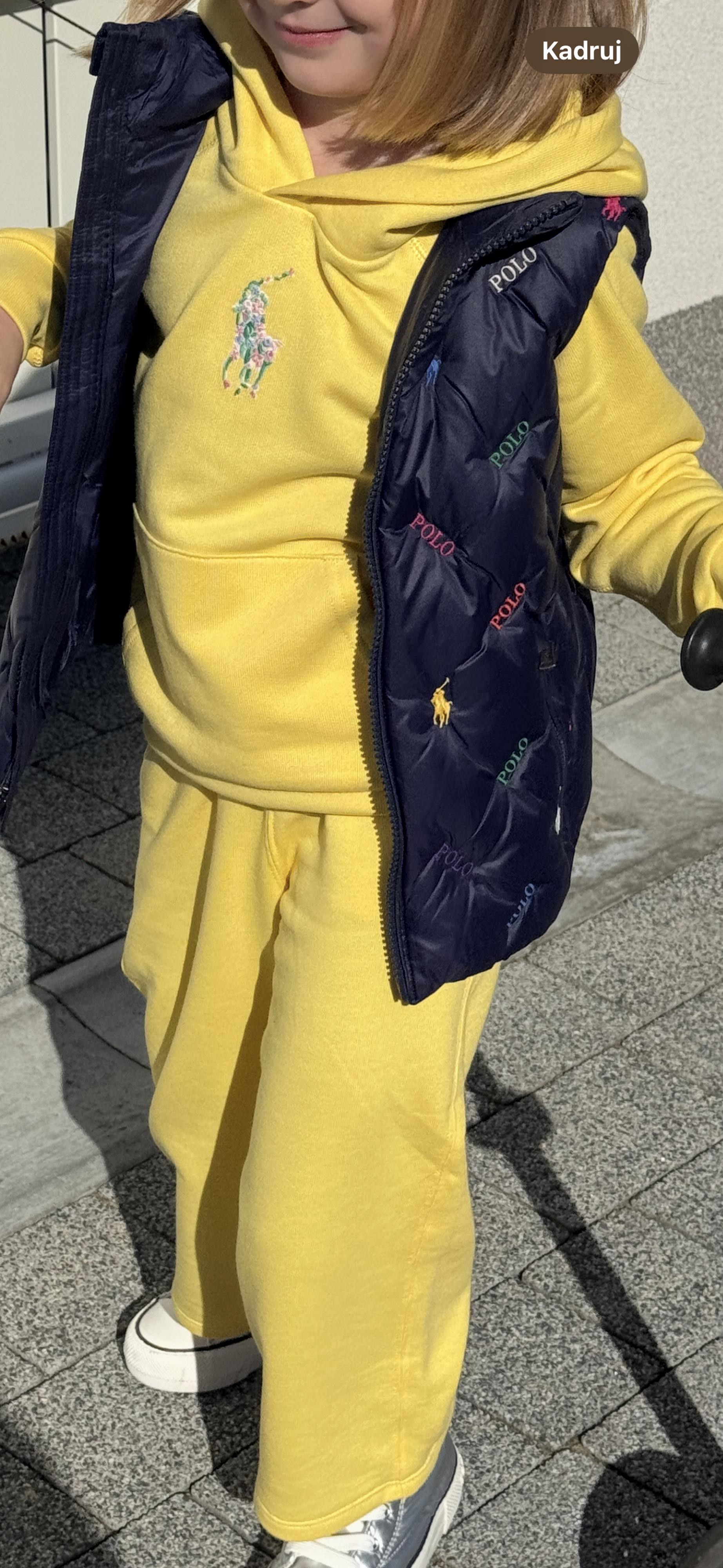 Yellow Polo Ralph Lauren pull-on sweatshirt for girls is crafted from sweatshirt fabric, featuring small, fine loops on the left side for a soft and pleasant touch. Additionally, a synthetic additive is included to enhance material spread and resilience.