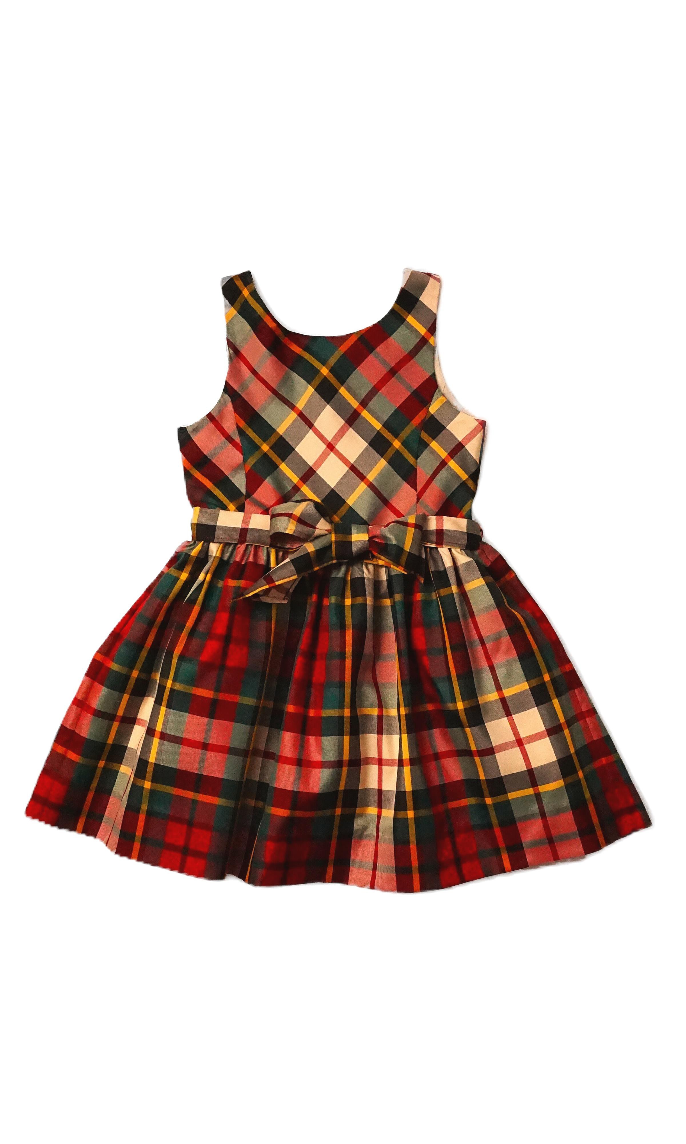 Girls' Checked Dress from Polo Ralph Lauren, cut at the waist, with a fitted top and wide straps, beautifully accentuates the figure. It is tied at the waist with a wide sash tied in a bow. An elegant color palette, perfect for both special occasions and family gatherings.
